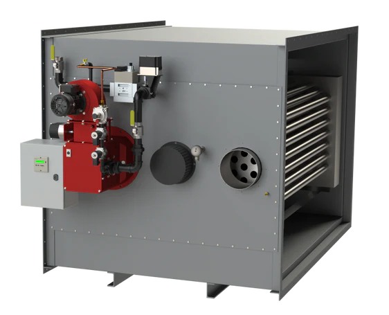 The ‘AHP’ series of indirect heat exchangers are designed for commercial air heating applications. The robust construction of the units makes them an ideal heat source for shopping centres and commercial premises. AHP heaters are usually fitted with a high temperature limit thermostat or thermocouple unit, in order to protect the heat exchanger from excessive overheat. Heater capacities of thermal outputs from 60kW to 1200kw are available.